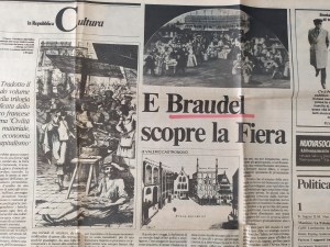 Ho trovato questo ritaglio di giornale con la recensione trascritta nel volume di Braudel, di cui nell’articolo, acquistato nei pressi della stazione di Porta Nuova a Torino. Un piacevole ritrovamento all’interno di un libro fondamentale.